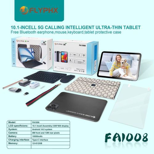 FLYPHX FA-1008 5G Dual Sim Android Tablet With Keyboard and Pen - 12GIG RAM - 10000mAh - Silver